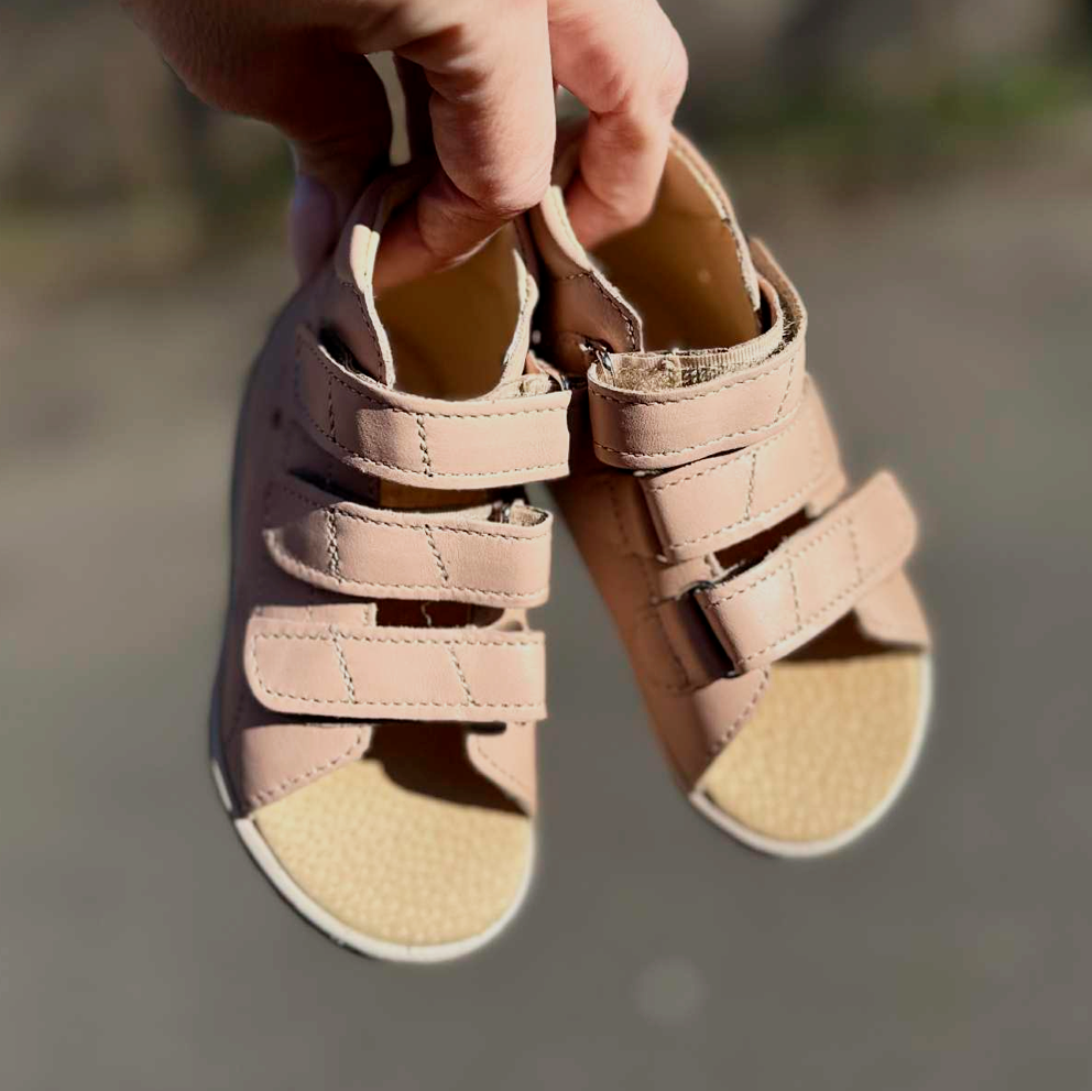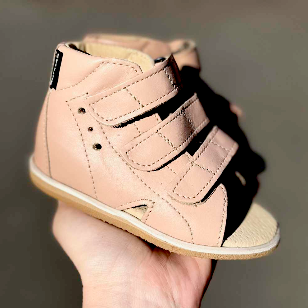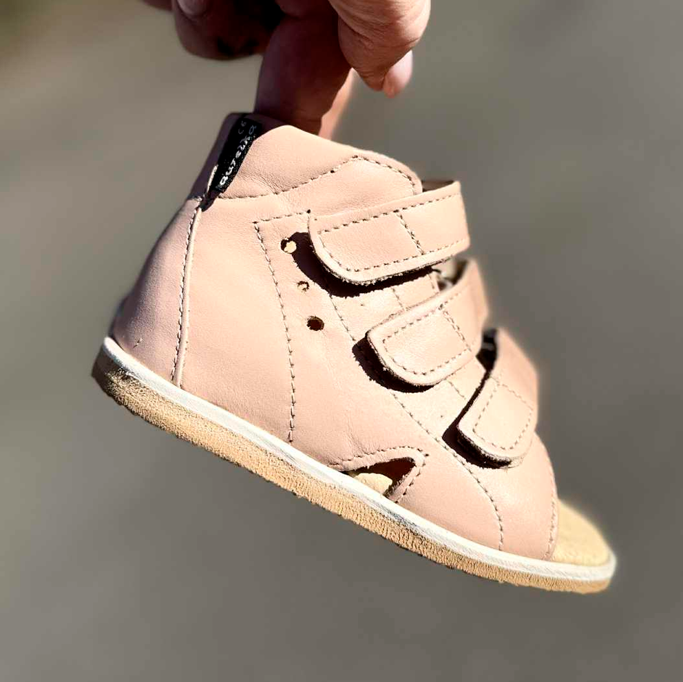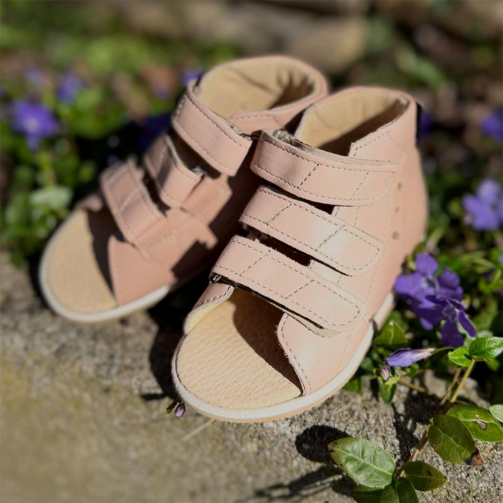 Aurelka sandal i lækker nude skind. Aurelkas sko er lavet i samarbejde med professionelle, ortopædiske læger og fysioterapeuter for ekstraordinær god støtte til børn med særlige støttebehov.