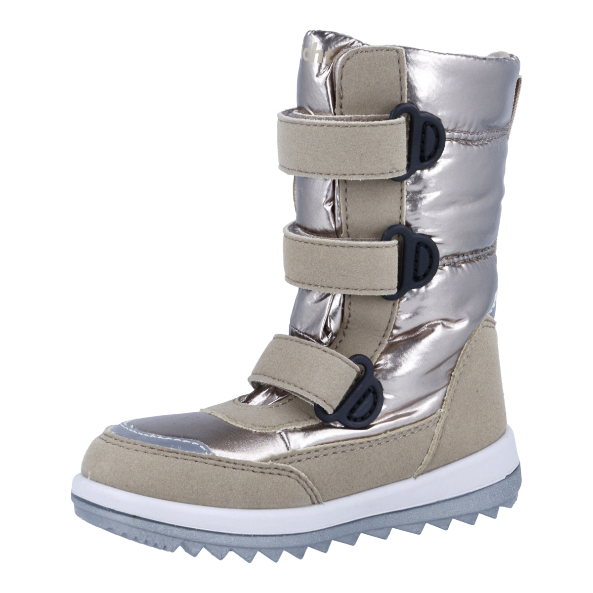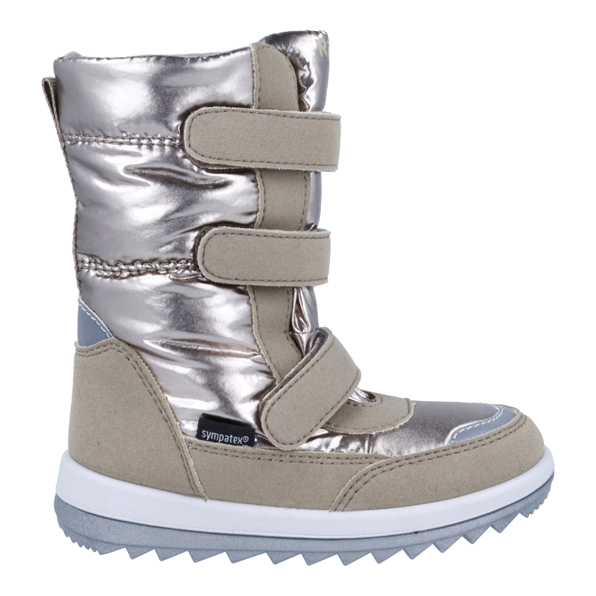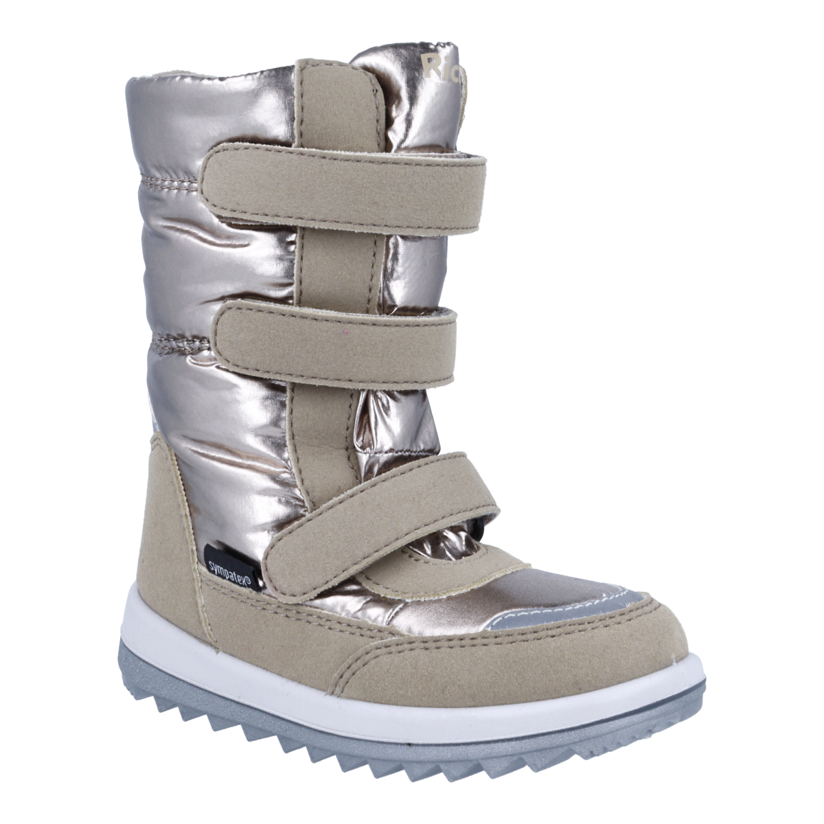 Super lækre vinterstøvler fra Richter. Støvlen er i metallic bronze nylon. Støvlen har sympatex membran, så den er 100% vandtæt samt åndbar. Den har tre velcro-lukninger for rigtig god tilpasning til foden.