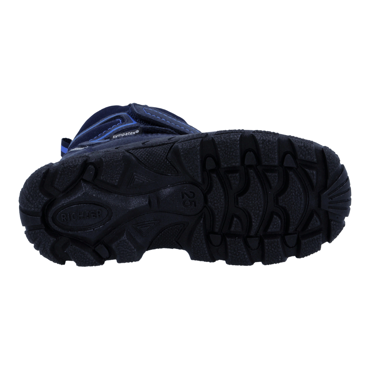 Utrolig let og varm, vandtæt støvle fra Richter. Støvlen har Sympatex membran, der gør støvlen vandtæt og samtidig åndbar. Støvlen er mørkeblå med blå detaljer og lukkes med to gode velcro lukninger. Den er lavet i nylon kombineret med et let fiber-materiale. Støvlen har en god gummisål og en rigtig god stabil støtte. Støvlen kan reguleres godt ind til foden - og er ikke så høj over vristen.