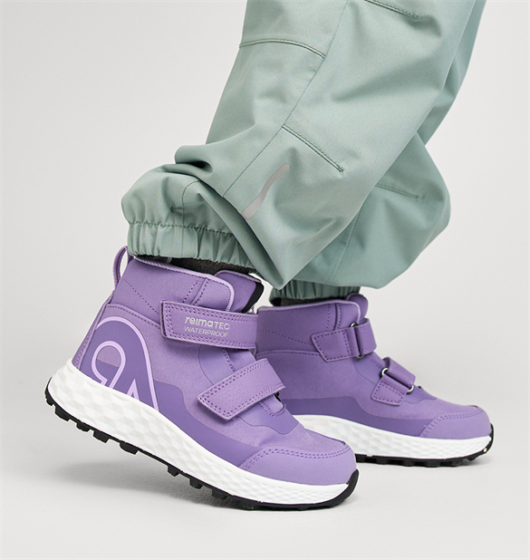 Længe har det været en udfordring med gummistøvler til børn med behov for ekstra støtte til fødderne, men det behøver det ikke at være mere med disse vandtætte basketstøvler fra Reima - her i en fin lilla / misty violet